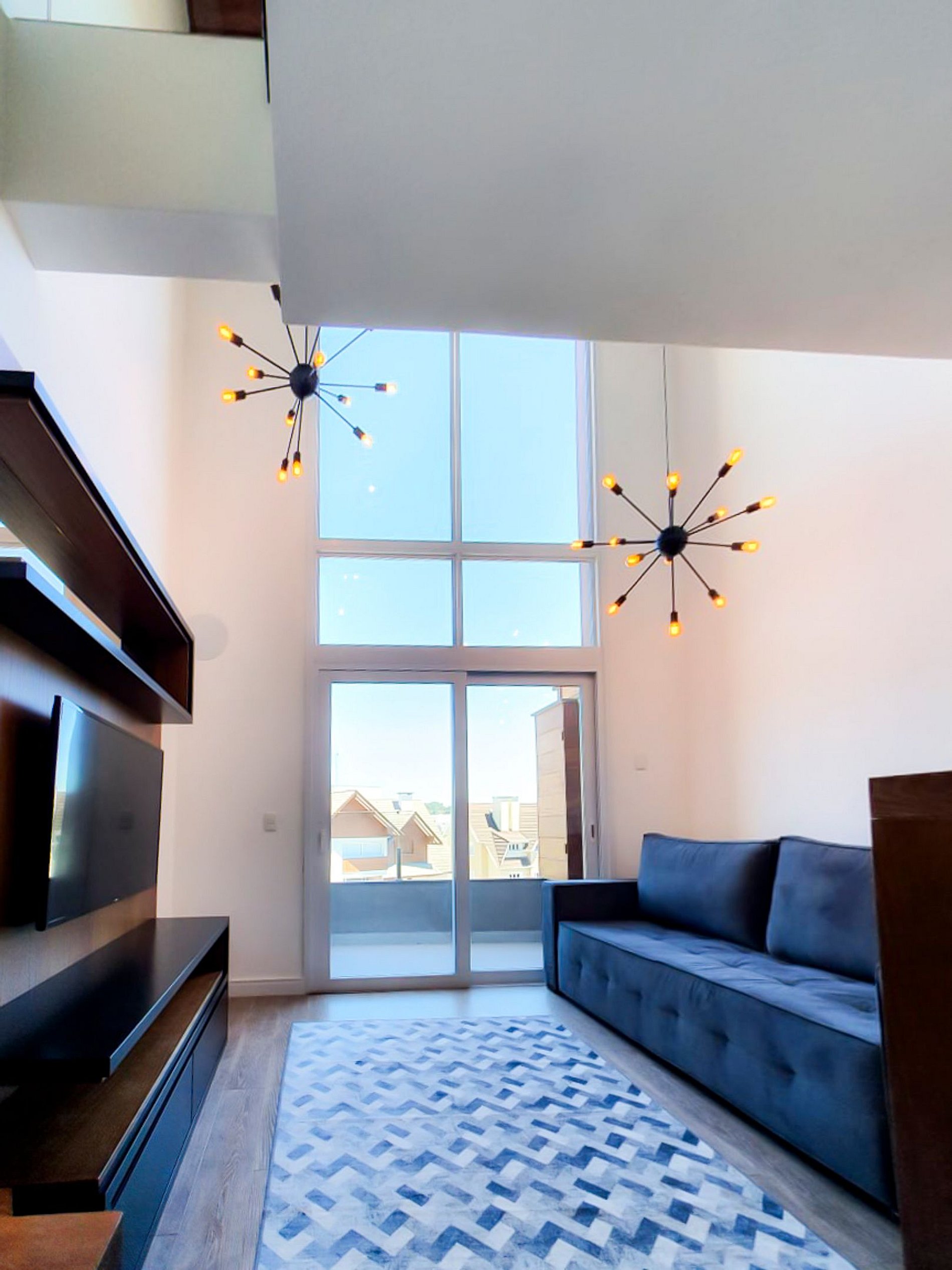 Sua estadia será ainda mais especial, nesse aconchegante loft em um dos prédios mais charmosos no centro Gramado. A sala com pé-direito duplo, integrada ao mezanino e à varanda com churrasqueira, fazem desse espaço uma experiência singular.