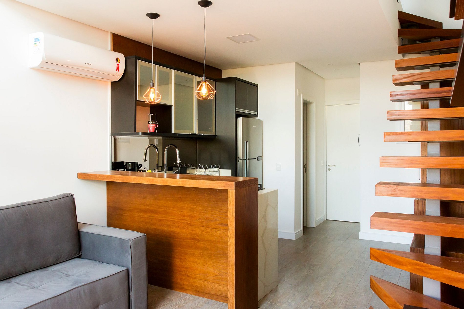 Observe com atenção as fotos, a escada e a distribuição do imóvel. Acreditamos que as peculiaridades do imóvel o tornam inadequado para crianças pequenas, devido à escada sem guarda-corpo e ao mezanino com guarda-corpo de vidro.