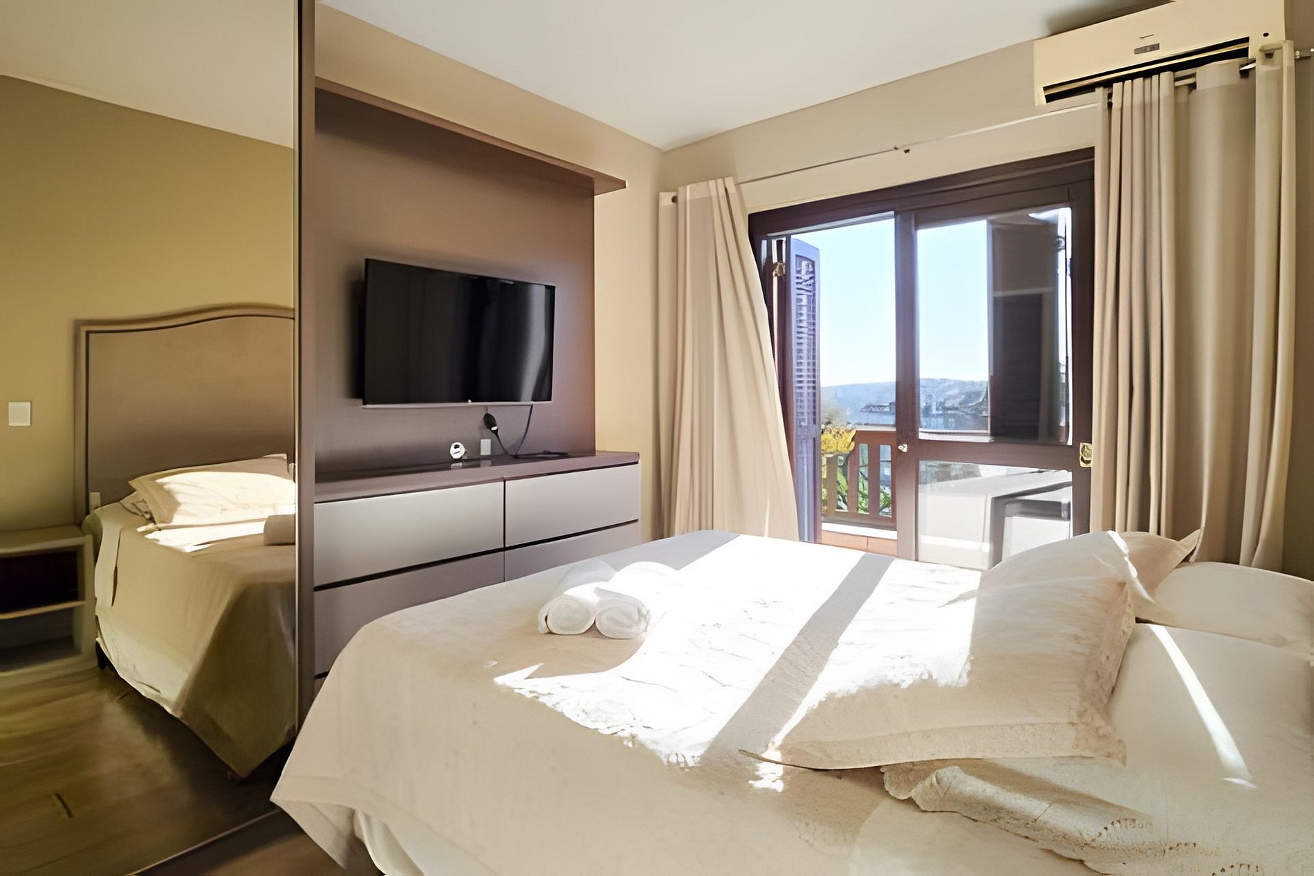 - O apartamento acomoda até 6 pessoas, incluindo adultos e crianças, com opção de aceitar mais 1 criança ou 1 bebê além da capacidade de 6 pessoas, com acomodação em colchão extra ou berço portátil;