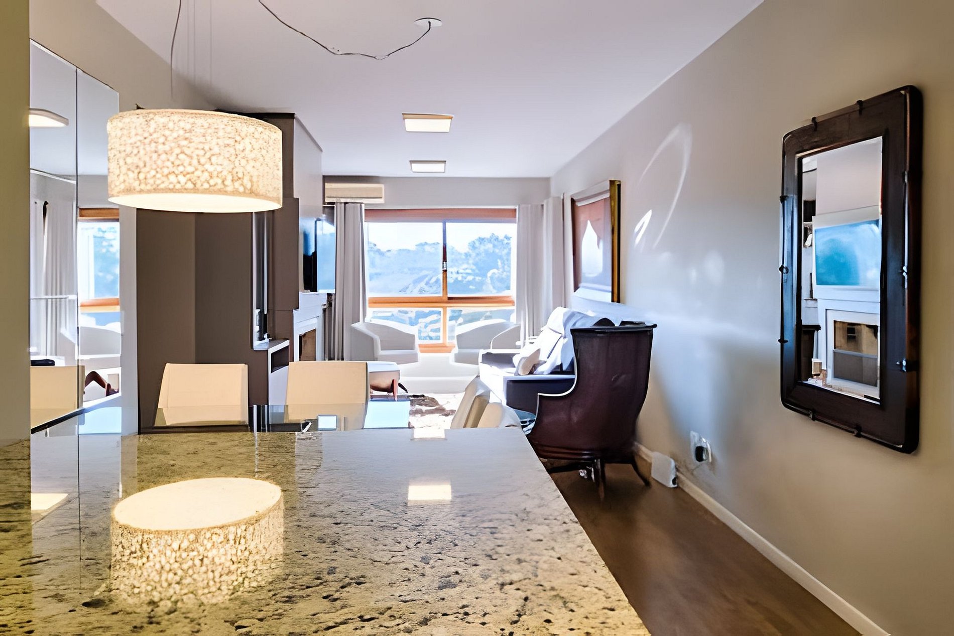 Sua família vai estar bem no centro de Gramado, perto de tudo, a poucos passos da Rua Coberta, nesse charmoso e requintado apartamento de 2 quartos, com terraço e uma linda vista. Localizado na Avenida das Hortênsias, na área mais nobre de Gramado, junto dos melhores fondues e restaurantes da cidade. Além de uma cozinha completa com churrasqueira, o apartamento dispõe de uma ampla sala de estar e jantar com lareira, aquecimento, tv, wi-fi, roupa de cama/banho e garagem
